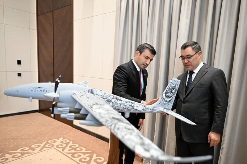 Bayraktar, törende Sadır Caparov'a, Kırgız kültüründe önemli bir yere sahip Manas Destanı'ndan sahnelerin işlendiği Bayraktar AKINCI TİHA'nın 1:10 ölçekli maketini takdim etti. Maketin gövdesi ve kanatlarında Manas Destanı'na ait sahneler yer alırken, bu detaylar Kırgızistan'ın zengin kültürel mirasını ve destanın kahramanlık hikayelerini yansıtıyor.