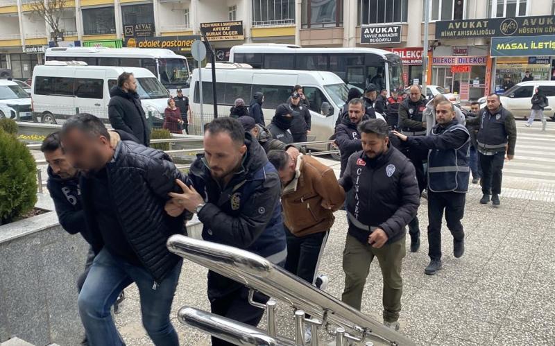 Gözaltına alınan 14 şüpheli, emniyetteki işlemlerin ardından Çorum Adliyesi'ne sevk edildi.