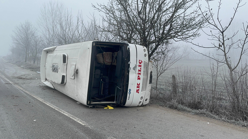 İ.D. idaresindeki 14 AK 225 plakalı servis midibüsü, Karacaağaç-Bahçeköy bağlantı yolunda sürücüsünün direksiyon hakimiyetini kaybetmesi sonucu devrildi.