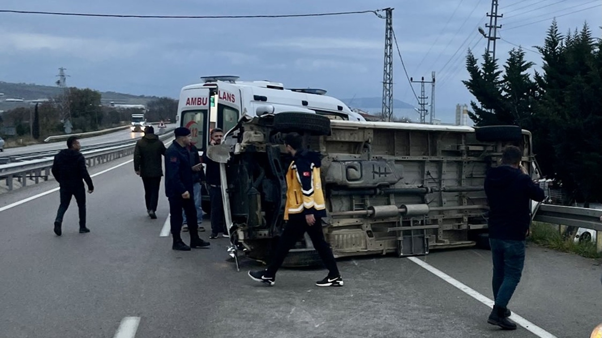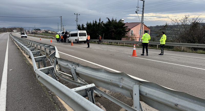 Gerze ilçesinden Sinop Organize Sanayi Bölgesinde faaliyet gösteren bir fabrikaya işçi taşıyan Muhammed Ali Yurbaş idaresindeki 57 S 4056 plakalı minibüs, Taşmanlı mevkisinde refüje çarparak emniyet şeridine devrildi.
