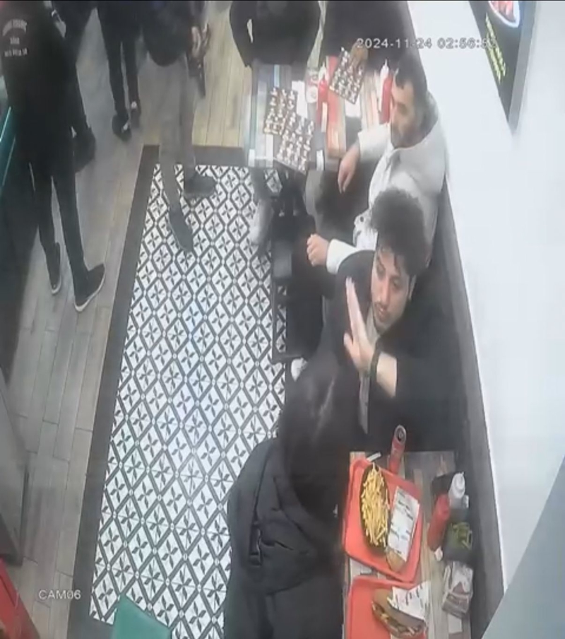 Bunu gören iş yerindeki garsonlar Tekin İ. (27), Adem İ. (33) ve Hüseyin K. (20) de Burak K.'yı tekme ve yumruklarla darbetmeye başladı. Dakikalarca darbedilen Burak K. ardından işyerinden dışarıya atıldı. Yaşananlar ise güvenlik kamerasına saniye saniye yansıdı. Olayın ardından Burak K.'nın şikayeti üzerine Beyoğlu Asayiş Büro Amirliği ekipleri çalışma başlattı. Görüntüleri inceleyen polis, şüpheli 3 garsonu yakaladı.