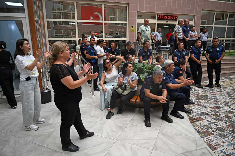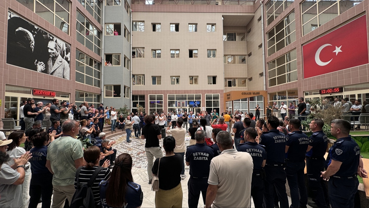 Toplu sözleşme için belediyenin teklifi nedeniyle eylem kararı alan memurlar, öğle molasında Seyhan Belediyesi binasında toplandı.