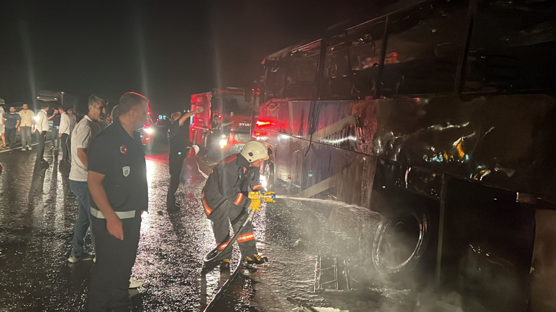 Yangın nedeniyle otobüste maddi hasar meydana geldi.