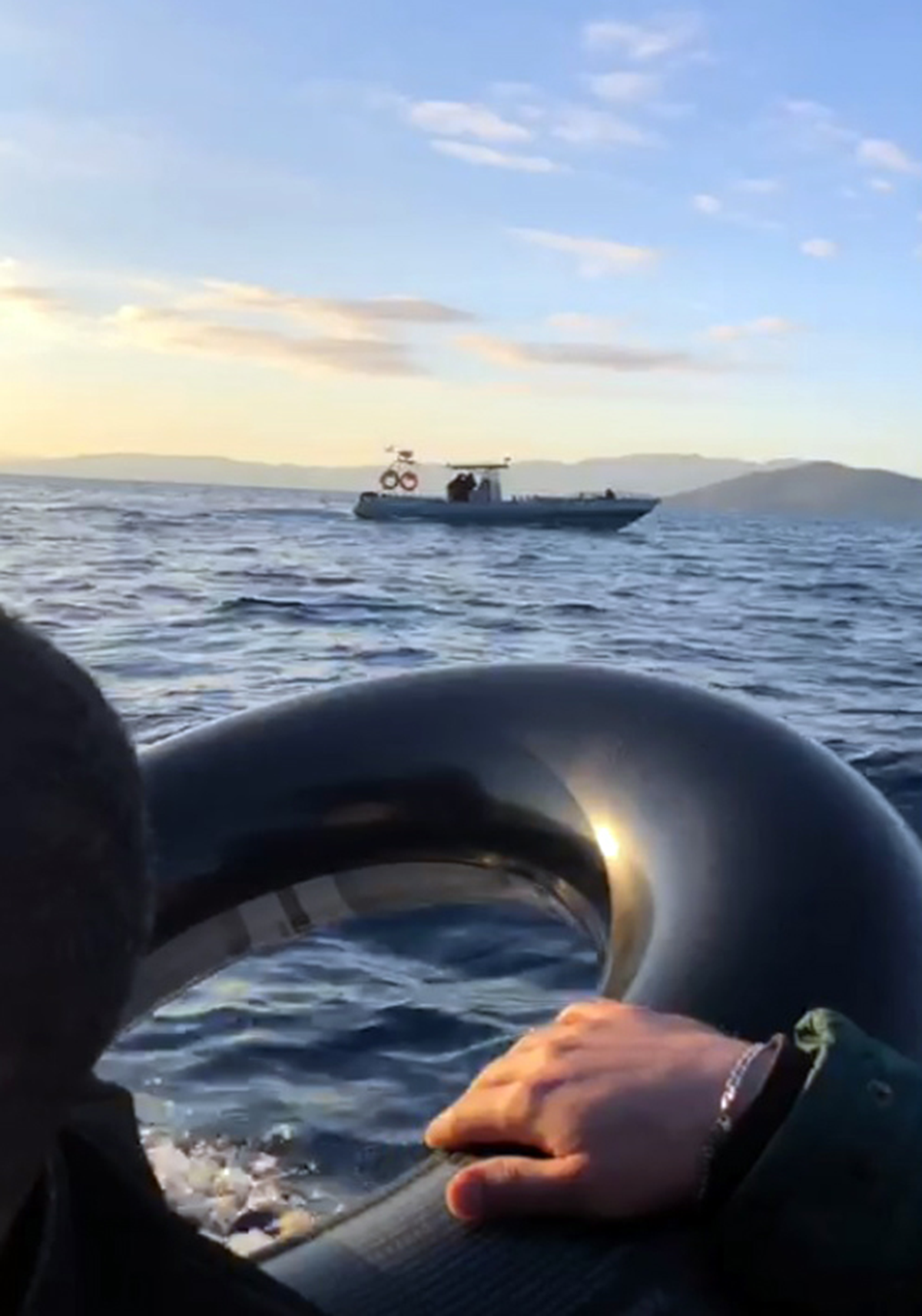 Sığınmacıların kurtarılması sırasında başka bir Türk Sahil Güvenlik botunun bölgede devriye görevi yapması da görüntülere yansıyor.