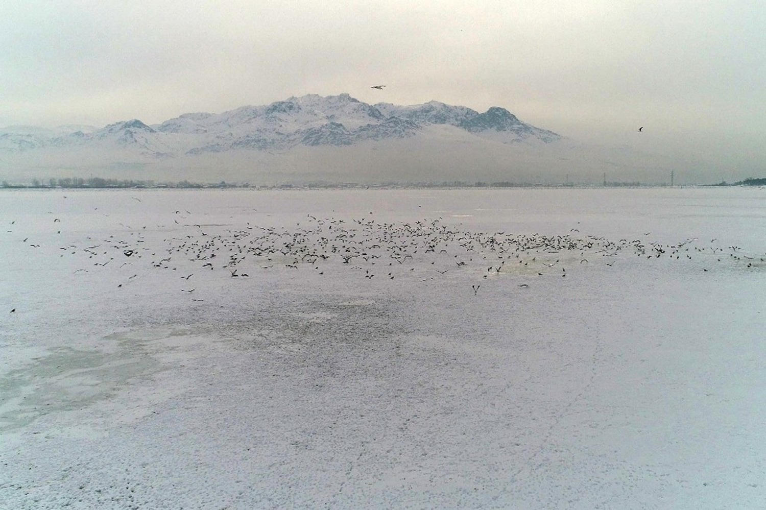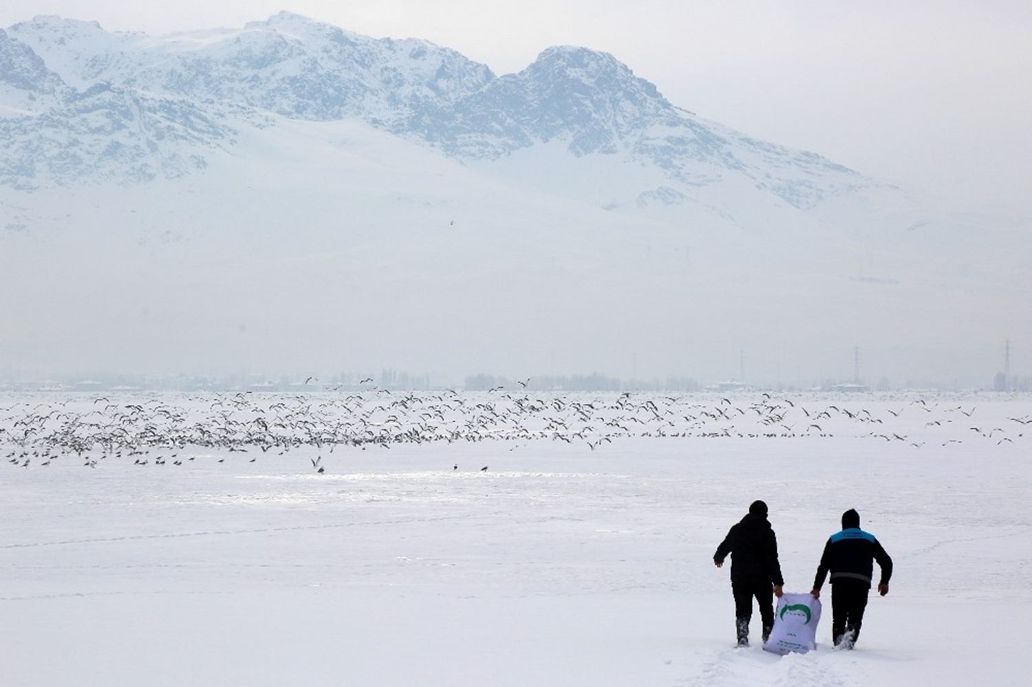 Sıhke Gölü’nün büyük bir kısmı donarken, üzerine konan binlerce martı ise aç kaldı. Tuşba Belediyesi Çevre Koruma ve Kontrol Müdürlüğü ekipleri, donan gölde yiyecek bulamayan martılara buğday attı.