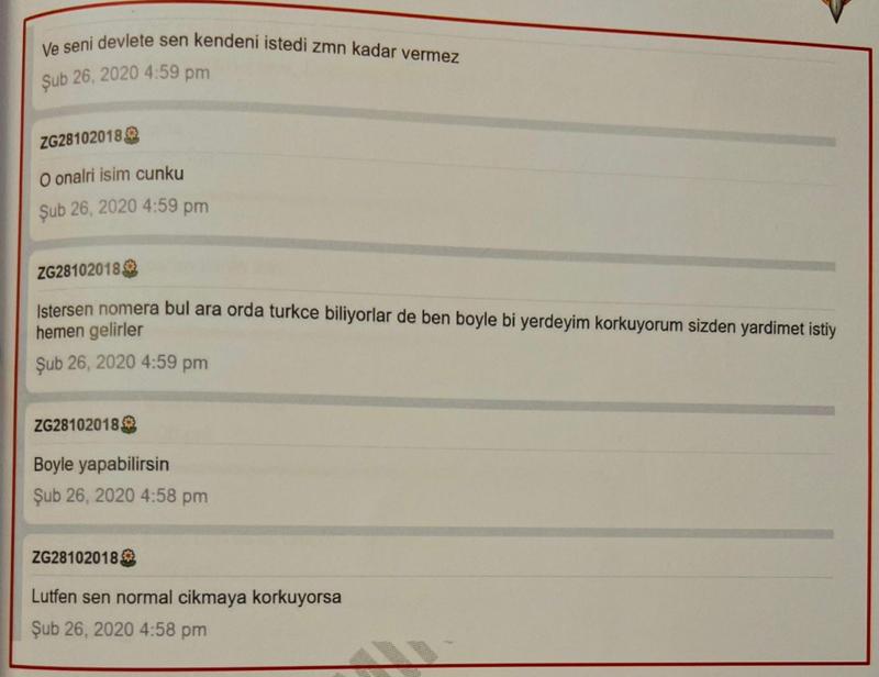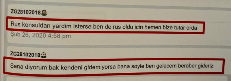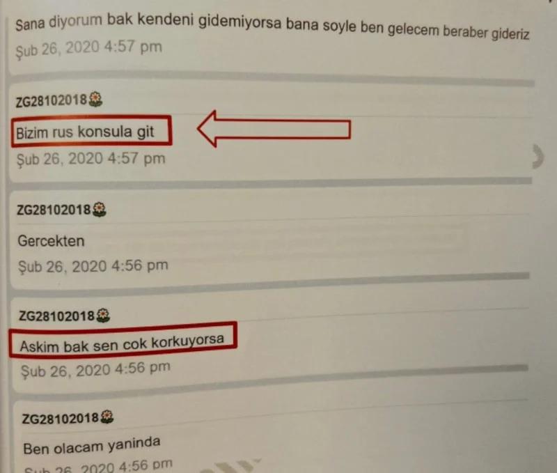 Mesaj içeriklerinde geçen; "Seni ONLAR'ın elinden kurtarırım", "Rus konsolosluğa git, seni korurlar", "Devlete bildirmezler, korkma" gibi ifadelerle belirli bir yetkili makamı kastettiğine dair ima ve vurgular yaptığı görüldü.