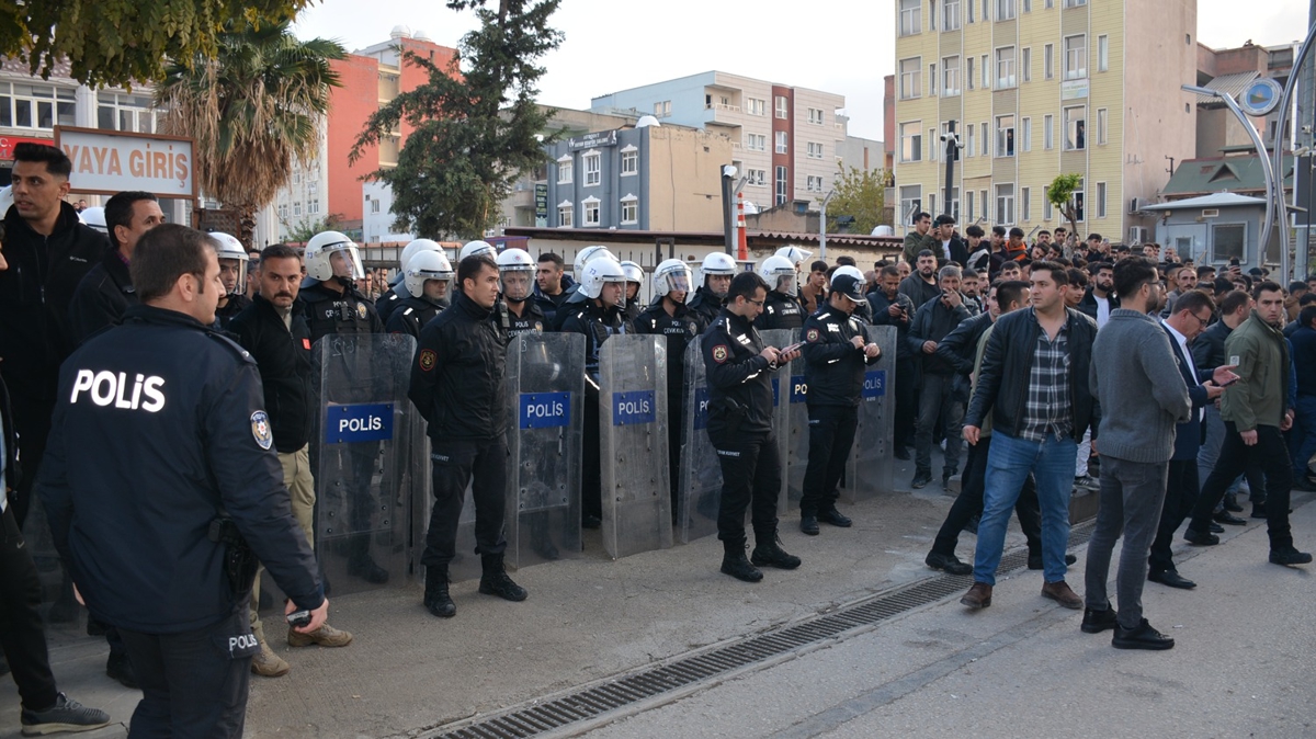 Kalabalığın dağılmasının ardından gözaltına alınan İ.B, Kaymakamlık binasından çıkarılarak İlçe Emniyet Müdürlüğüne götürüldü.
