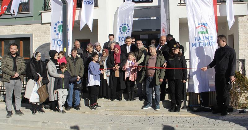 Vali Özarslan'ın konuşmasının ardından bazı hak sahiplerine anahtarları teslimi edilerek kurdele kesildi.