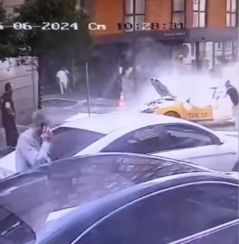 İhbar üzerine olay yerine gelen itfaiye ekipleri soğutma çalışması yaparken polis ekipleri emniyet şeridi çekerek çevrede güvenlik önlemi aldı. Taksi şoförü Selahattin Çıtlak "Yangın neden çıktı bilmiyorum muhtemelen elektrikten çıktı. Yangın aracın torpido bölümünden çıktı" diye konuştu. Takside başlayan yangın ve yaşanan panik anları güvenlik kamerasına yansıdı.