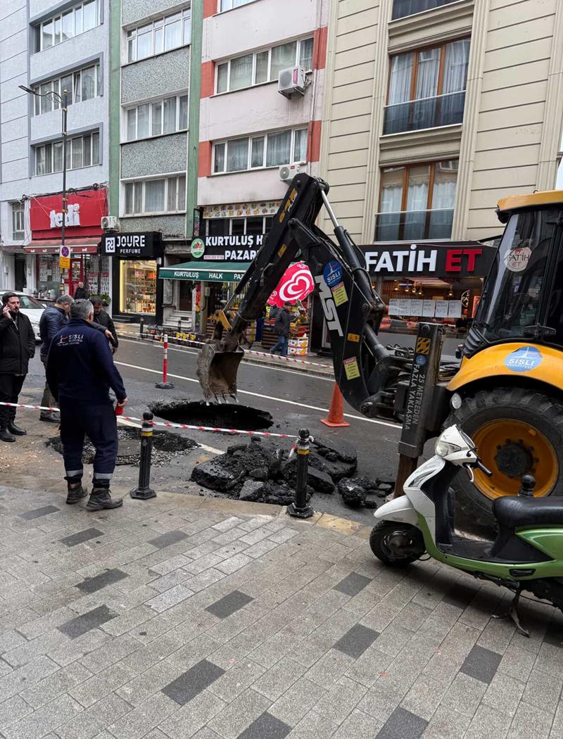 Caddede çökme nedeniyle oluşan trafik yoğunluğu yolun belediye ekiplerince onarılmasının ardından normale döndü.