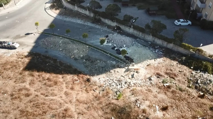 Tahtakale Mahallesi'nde sitelerin önündeki boş arazi kaçak hafriyat döküm alanına dönüştürüldü. Araziyle yetinmeyerek, yolu da tamamen hafriyatla kapattılar.