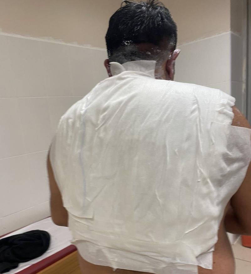 Üzerine sıcak su dökülen Yıldırım'ın elinde ve sırtında yanıklar oluştu.