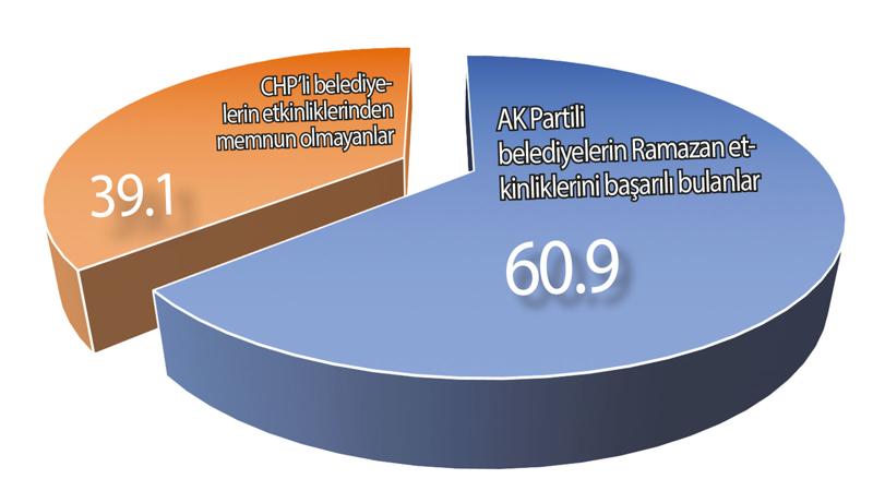 AKŞAM Gazetesi'nin haberine göre, katılımcıların yüzde 54'ü Ramazan etkinliklerini yetersiz buldu. Etkinlikler kapsamında AK Partili belediyelerin Ramazan etkinliklerini başarılı bulanların oranı yüzde 60.9 iken, CHP'li belediyelerin etkinliklerinden memnun olanların oranı yüzde 39,1'de kaldı.