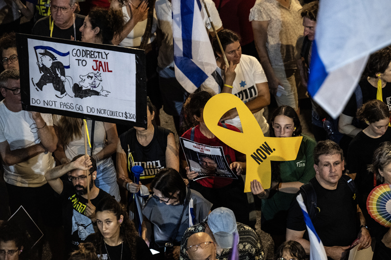 İsrail'in Tel Aviv kentinde toplanan çok sayıda gösterici, Başbakan Binyamin Netanyahu hükümetinden Hamas ile ateşkes, karşılıklı esir takası anlaşması imzalaması ve erken seçimlere gidilmesi talebiyle gösteri düzenledi. Ellerinde İsrail bayrakları bulunan protestocular, Başbakan Netanyahu ve hükümetindeki siyasetçiler aleyhinde pankart, afiş ve dövizler taşıdı.
