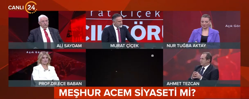 24 TV'de Gazeteci Murat Çiçek'in sunduğu "Açık Görüş" programına katılan Gazeteci Ahmet Tezcan, İran'ın adında İslam'ın olduğunu ama daima kendilerini ayrıştırdıklarını dile getirdi.