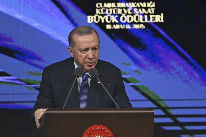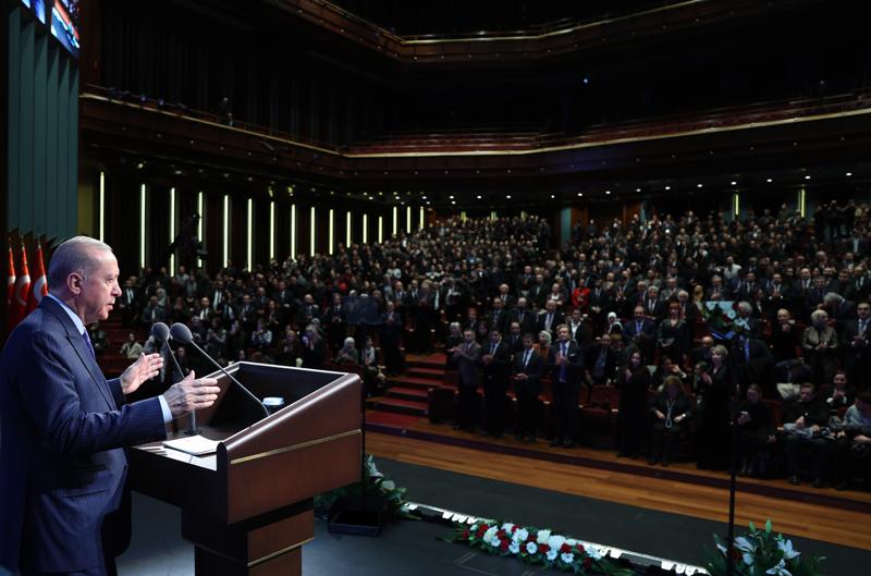 Yapay zeka mahsulü şiirlerin, kitapların, şarkıların, resimlerin, sinema filmlerinin yüz milyonlara ulaştığını ve gerçekle sanal arasındaki farkın büyük oranda kaybolduğu bugünlerde kendilerini yarın neyin beklediğini tam olarak bilemediklerini belirten Erdoğan, "Şurası bir gerçek ki milli kimliği, milli kültürü, değeri, ideali, erdemi, ahlakı dışlayan her trend yüzeyselliğe mahkum olmaktan kurtulamaz. Hiçbir derinliği, özgünlüğü olmayan, günlük üretilip, günlük tüketilen işlerle maalesef biz de bu küresel fırtınanın önünde duramayız." dedi.