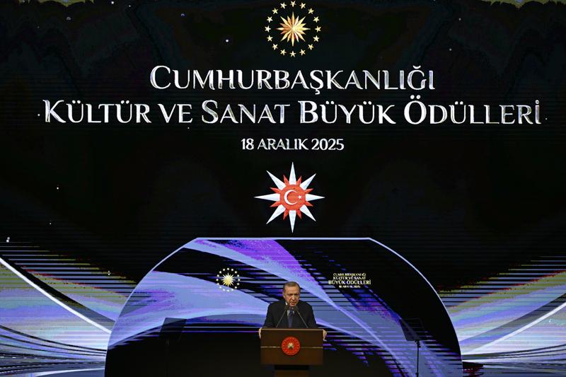 Erdoğan, Beştepe Millet Kongre ve Kültür Merkezi'nde düzenlenen Cumhurbaşkanlığı Kültür Sanat Büyük Ödülleri Töreni'nde, ödüllerini takdim edecekleri ilim, kültür ve sanat erbaplarını ayrı ayrı tebrik etti.