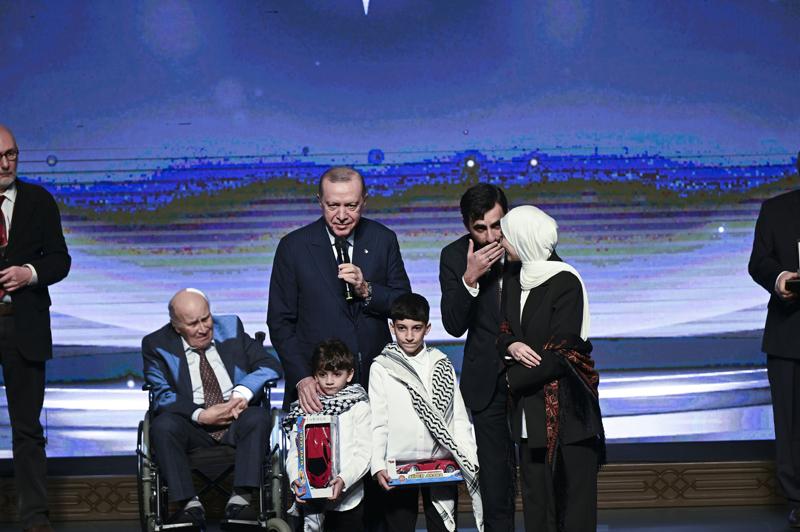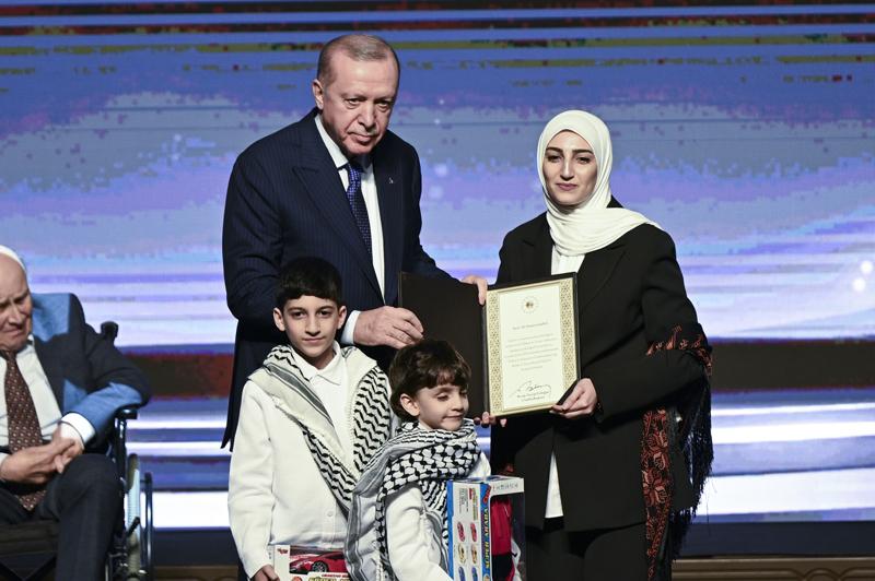 Gazze'de görevde olan AA foto muhabiri Ali Jadallah'ın ödülünü ise eşi Dua İsavi ve çocukları, Cumhurbaşkanı Erdoğan'dan aldı.