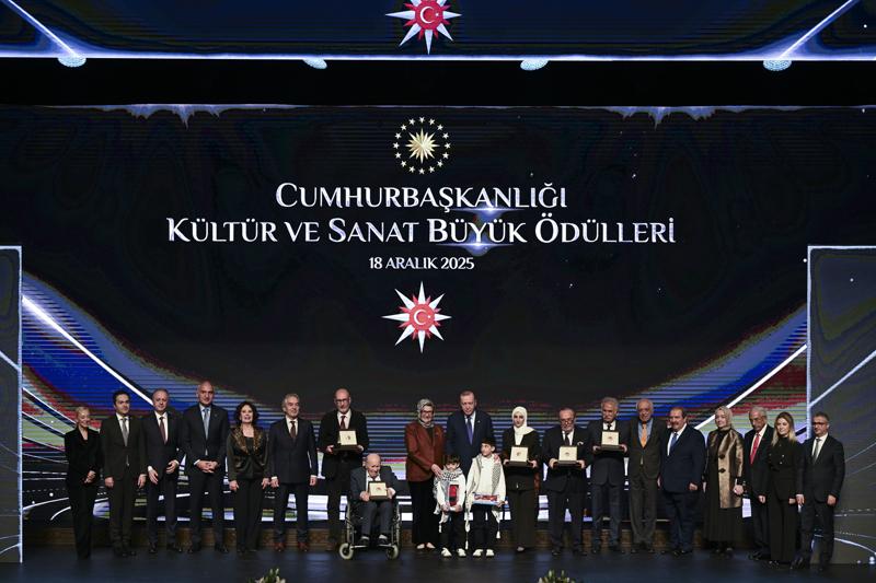 Cumhurbaşkanı Erdoğan, ödüle kayık görülenler, Kültür ve Turizm Bakanı Mehmet Nuri Ersoy ve Cumhurbaşkanlığı Kültür ve Sanat Politikaları Kurulu üyeleriyle hatıra fotoğrafı çektirdi.