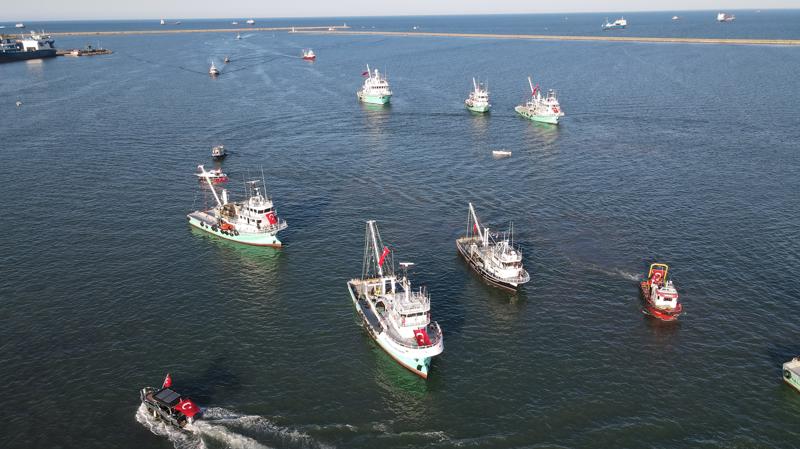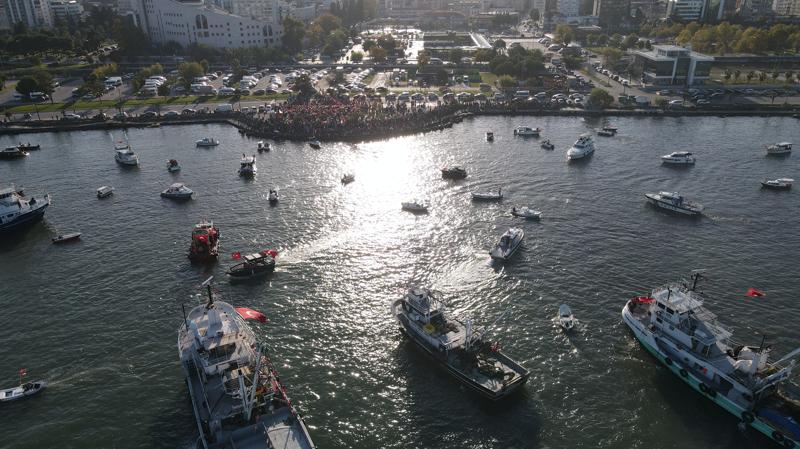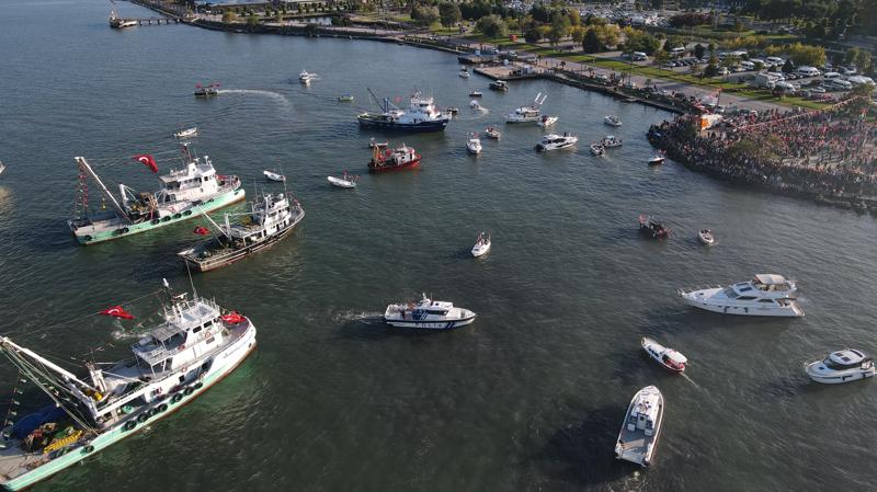 Samsun'da, Filistin ve Küresel Sumud Filosu'na destek için bir araya gelen denizciler, gemi ve teknelerle Karadeniz'e açıldı.