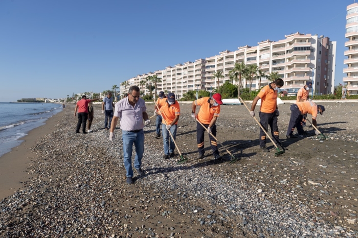 Mersin Büyükşehir Belediyesinden yapılan yazılı açıklamaya göre, Çevre Koruma ve Kontrol Dairesi ekiplerince, Tarsus ve Akdeniz ilçelerinin ardından Erdemli ilçesi sahillerinde de görülen petrol atıkları nedeniyle temizlik çalışması başlatıldı.