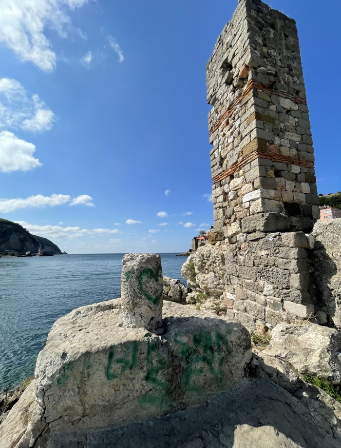 Amasra Müze Müdürlüğünce, Cenevizliler tarafından Kemere Köprüsü mevkisine yapılan, çevresinde Amasra Kraliçesi Amastris'in hamamının bulunduğu tarihi Direkli Kaya'ya sprey boyayla yazı yazılması üzerine inceleme başlatıldı.