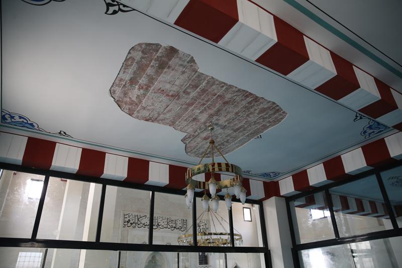 Görüntülerde, imamın cemaate namaz kıldırdığı sırada tavandan alçı parçalarının düşmesi ve cemaatin panikle namazı bırakması yer alıyor.