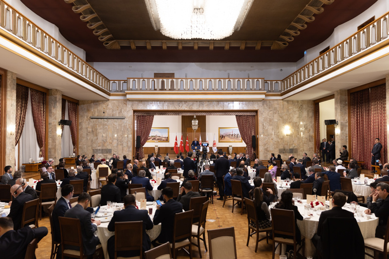 "Türkiye olarak biz, başından itibaren iki devletli çözümün tek çıkar yol olduğunu söylüyoruz. Maalesef özellikle 7 Ekim'den sonra modern zamanların gördüğü en büyük insani katliamlardan birisini yapan, hatta Holokost'a dair İsrail'in bütün propagandalarını yerle bir eden, Yahudilere karşı Avrupa'da yapılan Holokost'tan daha acısını, daha sancılısını, daha vahşisini Filistinlilere karşı gerçekleştiren bir holkostla karşı karşıyayız. Türkiye olarak ilk günden itibaren Müslüman Gazze halkına karşı yapılan soykırıma varan bu katliamın durdurulması, acil ateşkes ve insani yardımın gerçekleştirilmesi için barışçıl bütün mekanizmaları harekete geçirmeye çalıştık. Ama ne yazık ki İsrail, bazı çevrelerden aldığı desteklerle bu pervasız saldırganlığını sürdürdü.