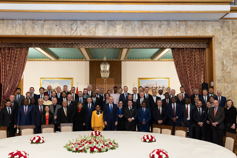 Onun için uluslararası sofra niteliğinde olan bu soframızda bir kere daha açıkça ifade ediyor ve ilan ediyoruz ki gelin, uluslararası camia olarak insanlığın sorunlarını hep beraber müzakere ederek, anlayış içerisinde, karşılıklı rıza içerisinde çözebilelim. Eğer sorunlarımızı tartışıp bunlar için çözüm noktasına odaklanabilirsek inanın ki bugün karşımızda devasa sorunlar gibi duran bu işlerin, bu gelişmelerin her birisi bizler için yeni bir fırsata dönebilir. Bu fırsatları yaratabilmek, oluşturabilmek uluslara camianın elindedir."