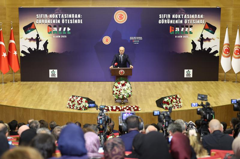 TBMM Başkanı Kurtulmuş, Gazze soykırımının üzerinden iki yıl geçmesine rağmen hala saldırıların sürdüğünü dile getirerek, İsrail'in, en son Küresel Sumud Filosu'na Akdeniz'in uluslararası sularında ağır silahlı askerlerle müdahale ettiğini ve 40'ı aşkın ülkeden yüzlerce insanı gayriinsani şartlarda gözaltına alarak İsrail'e götürdüğünü anlattı.