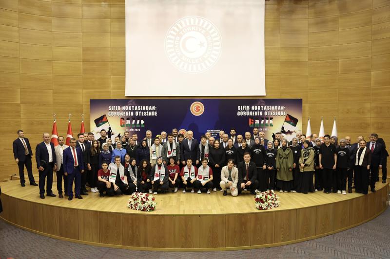 TBMM Başkanı Kurtulmuş'un konuşmasının ardından "Sıfır Noktası'ndan: Görünenin Ötesinde Gazze" belgeselinin gösterimi yapıldı.