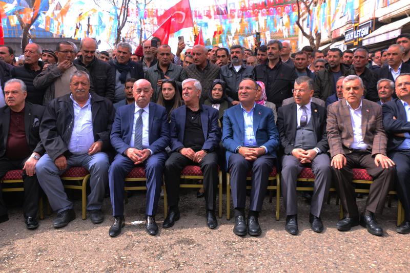 Cumhurbaşkanı Recep Tayyip Erdoğan'la yol yürümeyi, şereflerin en büyüğü saydıklarını aktaran Bozdağ, "Bugüne kadar onunla Şanlıurfa için yürüdük, Türkiye için yürüdük. İnşallah 31 Mart'ta Türkiye, Şanlıurfa, milletimiz, insanımız için yürümeye devam edeceğiz. Şanlıurfa, Allah'ın izniyle 'Yeniden Erdoğan, yeniden AK Parti' diyerek bu yürüyüşü güçlü bir şekilde yürütecek ve güçlü bir şekilde yoluna devam edecektir." diye konuştu.