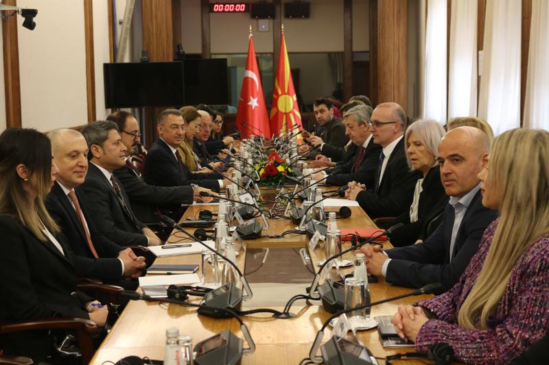 Türkiye ile Kuzey Makedonya arasında ticaret hacminin 1 milyar dolara ulaştığını belirten Oktay, bunu iki katına çıkararak 2 milyar dolar seviyesine ulaştırma hedefleri olduğunu vurguladı.