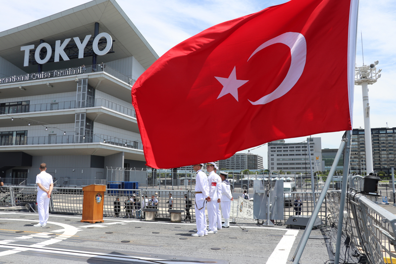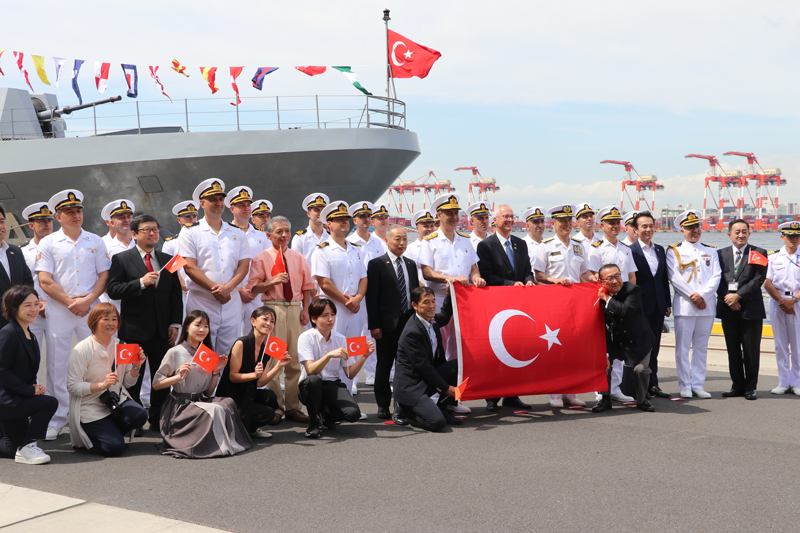 Karşılama törenine Türkiye'nin Tokyo Büyükelçisi Korkut Güngen, Japonya Deniz Öz Savunma Kuvvetleri (MSDF) Yokosuka Bölgesi Komutanı Koramiral İtou Hiroşi ile davetliler katıldı.