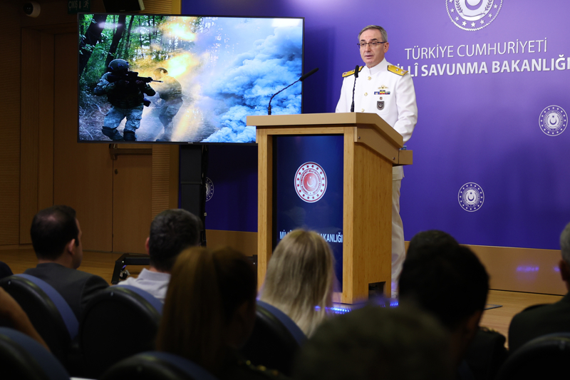 Basın ve Halkla İlişkiler Müşaviri Tuğamiral Zeki Aktürk, bakanlıkta düzenlediği basın bilgilendirme toplantısında, TSK'nın, terör örgütleri PKK/KCK/PYD-YPG, DEAŞ ve FETÖ olmak üzere her türlü tehdit ve tehlikeye karşı mücadelesini kesintisiz sürdürdüğünü belirtti.