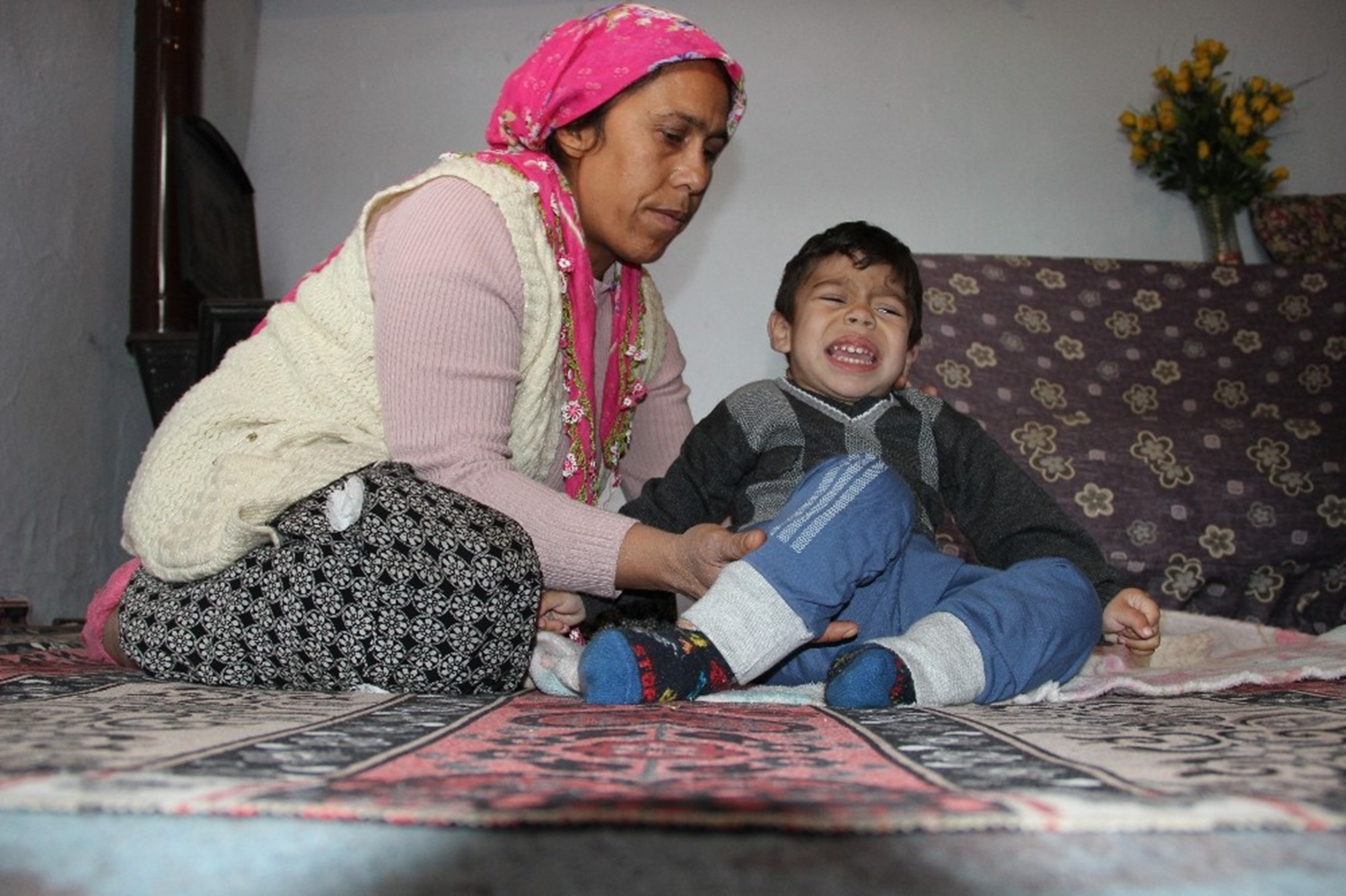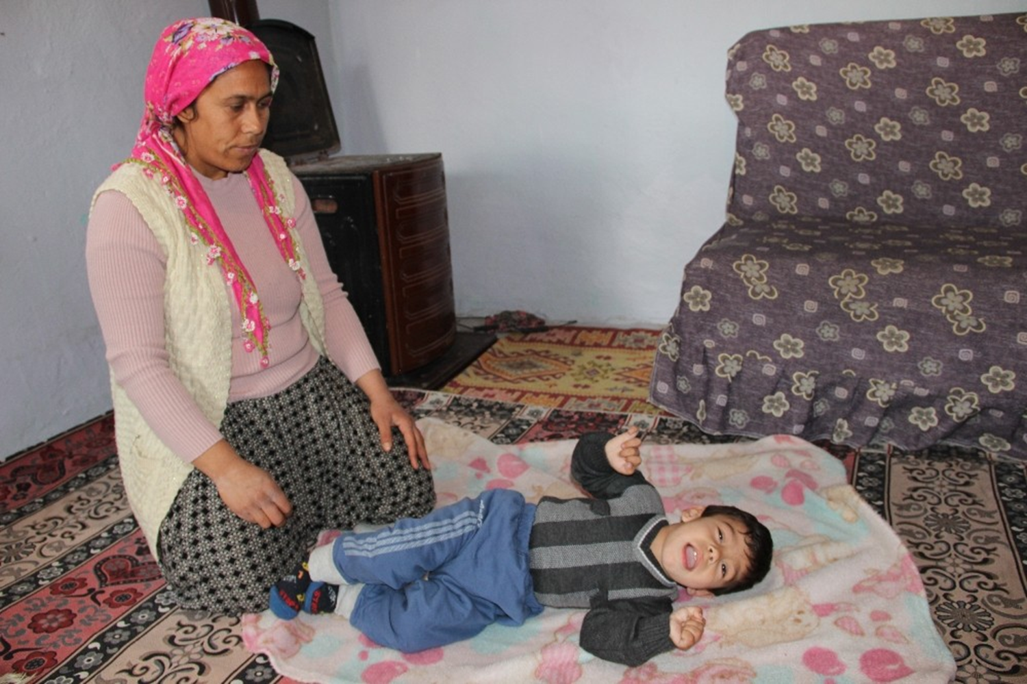 “Gitmediğimiz yer kalmadı, çare arıyoruz. Eşimin işi yok, işten çıkarıldı ben de çocuklara baktığım için çalışamıyorum. Kimseye de oğlumu baktıramıyorum. Evden çıkardılar bizi şimdi annemin evinde bir göz odanın içinde kalıyoruz. 7 yaşındaki kızım da sabahlara kadar Yiğit’in ağlamasından dolayı uyuyamıyor. Okula gidemiyor. Oğlum, doğum sırasında beynine oksijen gitmediği için rahatsızlandı. Oradan aldılar, kuvözde çok kaldı. Göbeği bile orda düştü. Her yere gittik, özellere bile gittik. Bir ekmek param vardı onu da, her şeye razıyım ekmek alıp yemem yeter ki oğlum düzelsin diye. Kızımı da okula gönderemiyorum. Allah’tan tek isteğimiz oğlumun düzelmesi. Tek isteğimiz geri aldığı fizik tedavinin yapılması. Özel eğitimlerde yürüyecek mi, konuşacak mı? Gidiyoruz ama 2 gün yetersiz geliyor Yiğit’e. Belki yürütürler, konuşur, eli ayağı tutar, diğer çocuklar gibi koşturur. Manisa’yı bana verseler hiç gözümde yok, İzmir’i bana verseler hiç gözümde yok, sadece oğlum düzelsin başka bir isteğim yok.”