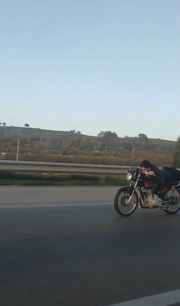 Bursa’da motosiklet sürücüsü, tek teker üzerinde seyir halindeyken, motosikletin üzerine yattı. Sosyal medyada paylaşılan görüntüyü izleyenler,sürücüye tepki gösterdi. Polis ekipleri, motosiklet sürücüsünü bulmak için çalışma başlattı.