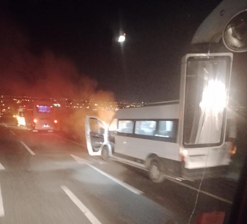 Olay, gece saatlerinde Edirne Bulvarı'nın Marmaracık Mahallesi mevkiinde meydana geldi. Fabrikadan aldığı işçileri bırakmak için yola çıkan Ömer T. idaresindeki 59 AIZ 862 plakalı servis minibüsünün motor kısmından dumanlar yükseldi. Sürücü aracı yol kenarına çekerek yolcuları tahliye etti.