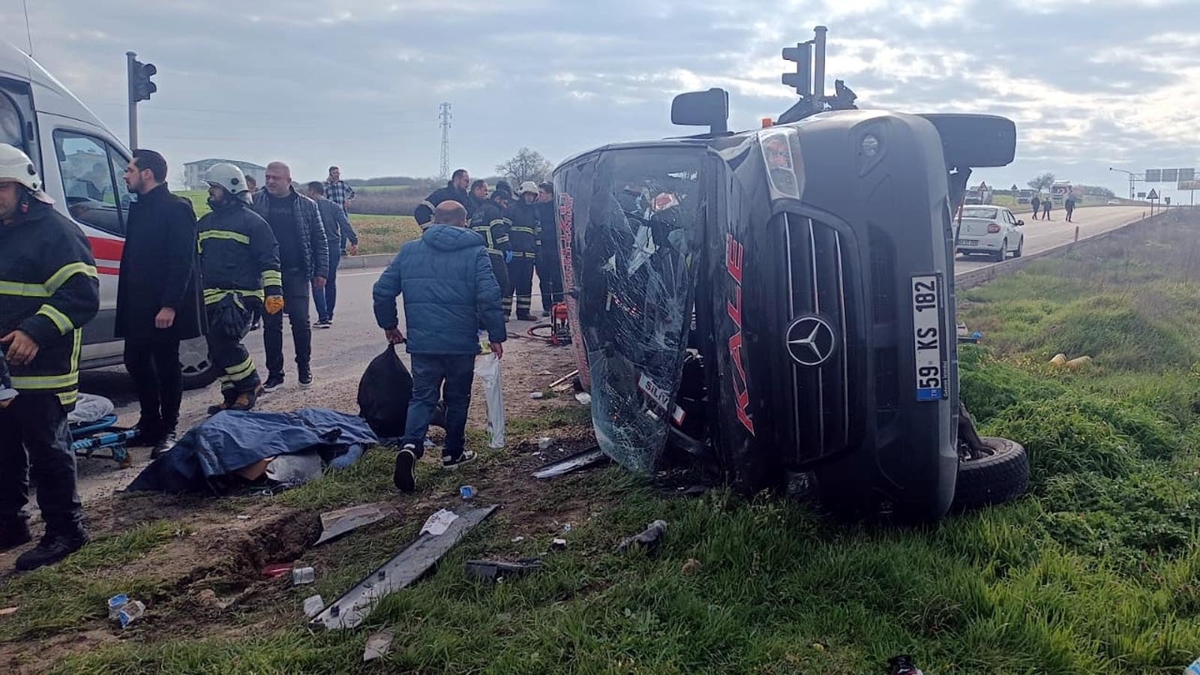 Kırklareli'nin Vize ilçesinden Tekirdağ'ın Saray ilçesine seyir halindeki 59 KS 182 plakalı minibüs, Çukuryurt Mahallesi Çayla Kavşağı'nda 34 BGE 76 plakalı tırla çarpışarak devrildi.