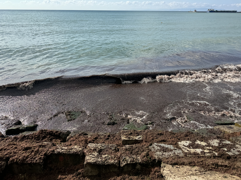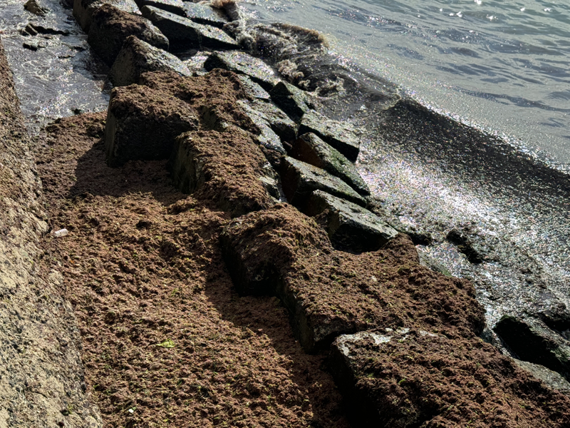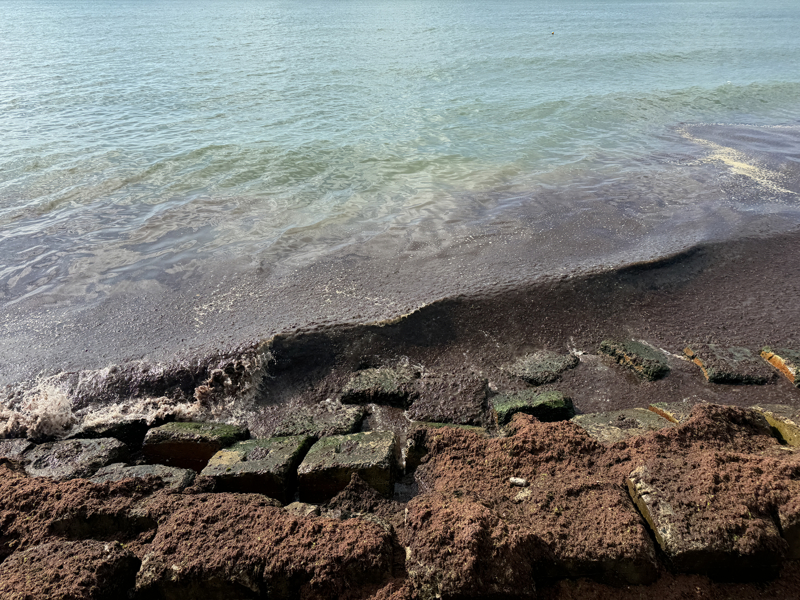 Sahildeki bazı alanlarda kırmızı yosun birikti.