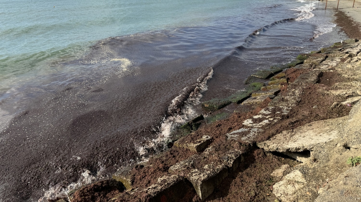 Sahildeki bazı alanlarda kırmızı yosun birikti.