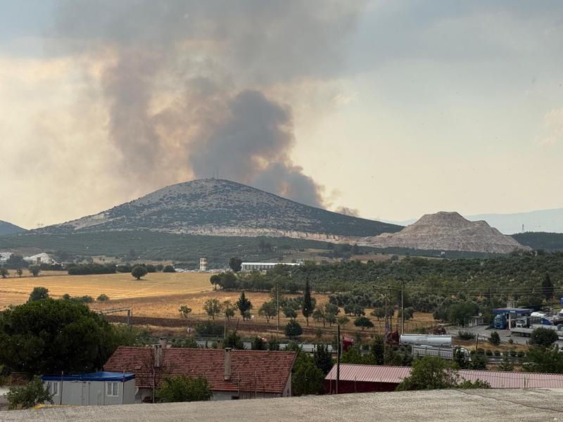 Mücadeleyi havadan inceleyen Bakan Yumaklı, daha sonra gazetecilere yaptığı açıklamada, sıcak hava, rüzgar, düşük nem nedeniyle yangının hızlı şekilde ilerlediğini söyledi.