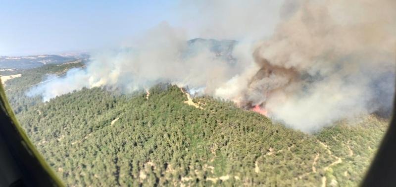 Şiddetli rüzgarın hakim olduğu bölgede başlayan orman yangınına 3 helikopter, 21 arazöz, 6 su ikmal aracı, 9 ilk müdahale aracı, 5 hizmet aracı, 1 dozer, 1 greyder ve 150 personel ile müdahale ediliyor.