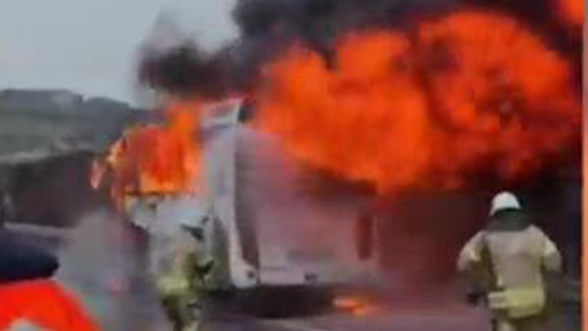 Bu arada, midibüsün yandığı anlar diğer sürücülerin cep telefonunca kaydedildi. Görüntülerde aracın alev alması ve itfaiye ekiplerinin müdahale etmesi yer alıyor.