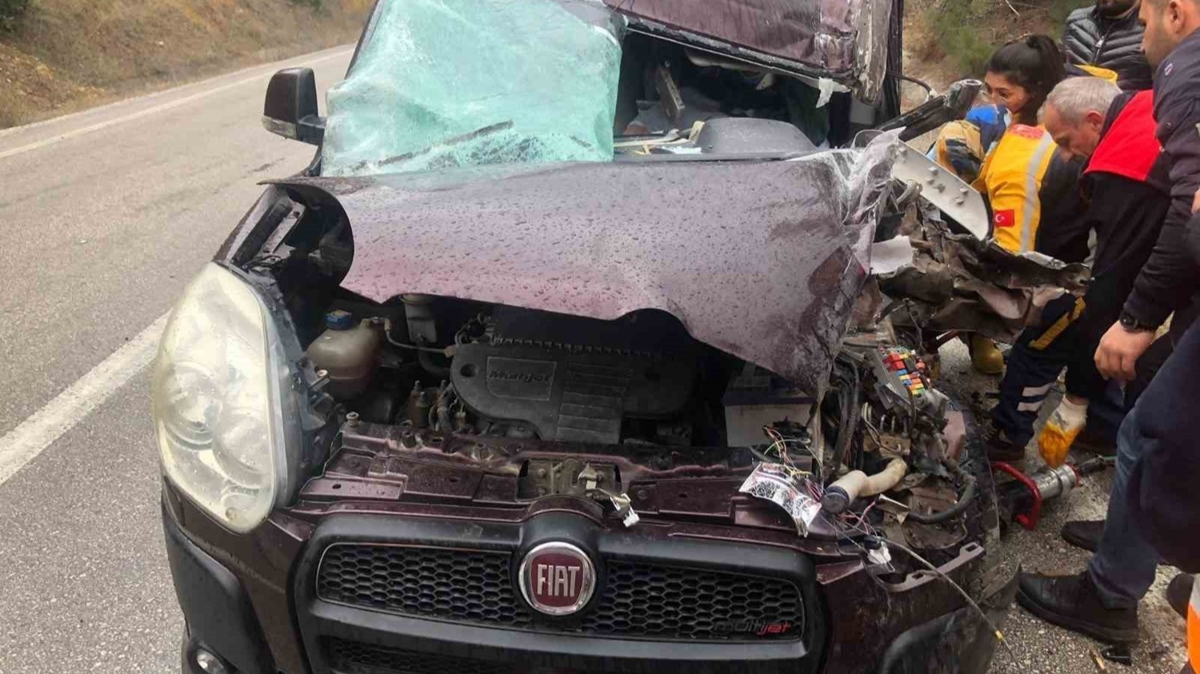Ticari araçla kafa kafaya çarpışan kamyonet yan yattı! 2 kişi yaralandı