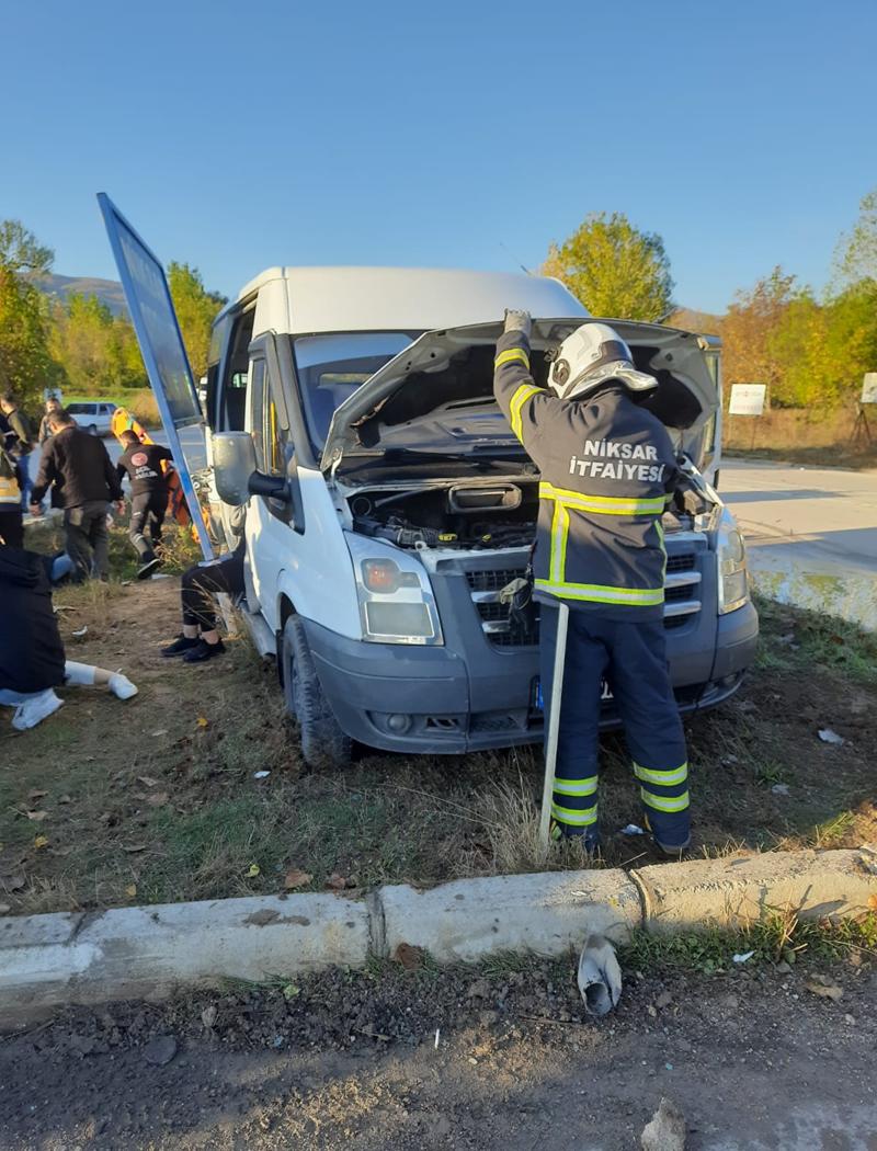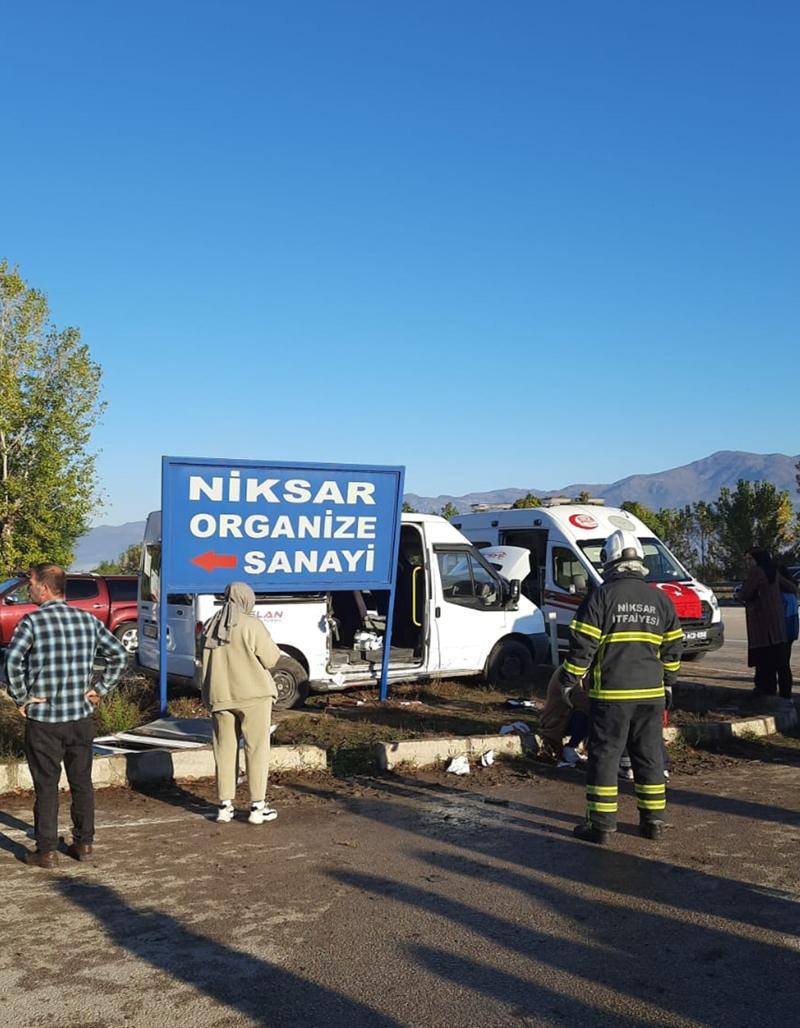 Tokat'ın Niksar ilçesinde, işçi servisi ile tarım işçilerinin bulunduğu minibüsün çarpışması sonucu 10 kişi yaralandı.
