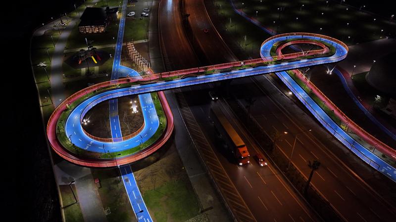 "Çevre dostu köprü, 250 metre uzunluğunda ve 8 metre genişliğinde tasarlandı. Üzerinde 4 metre genişliğinde bisiklet yolu, 2 metre genişliğinde yaya yolu ve 500 metrekarelik bir yeşil alanı bulunuyor. Vatandaşlarımız sadece karşıdan karşıya geçmekle kalmayıp, yeşille iç içe bir deneyim yaşama fırsatı da buluyor."