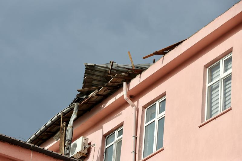 İlçede etkili olan fırtına nedeniyle Kanuni Eğitim ve Araştırma Hastanesinin Numune Kampüsü'ndeki binanın çatısının bir bölümü koptu.
