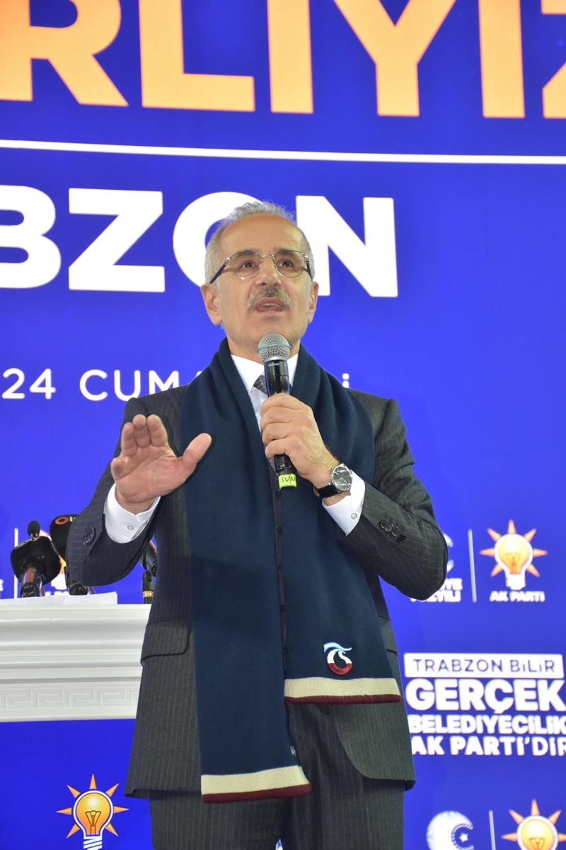 Aday tanıtım töreni öncesi konuşan Bakan Abdulkadir Uraloğlu, Samsun- Sarp demir yolunun proje çalışmalarının 2024 yılında başlayacağını belirterek, "AK Parti belediyelerinin adı altında ve bakanlığımız bünyesinde birçok iş yaptık. Karadeniz Sahil Yolu'ndan tutun da Zigana Tüneli'ne kadar birçok başarılı proje yaptık. İnsanlarımız da bunları kabul etti ve artık bize 'gelecekte ne gibi işler yapacaksınız?' diye soruyor. Hızlı treni biliyorsunuz; Ankara'dan Sivas'a ulaştırdık. Şimdi Kırıkkale'den Çorum'a, oradan Samsun'a ulaştırdık. Şimdi de Samsun'dan Sarp'a giden ve Trabzon'un da içinde bulunduğu demir yolunun proje çalışmalarını bu sene başlatıyoruz. Bazıları diyor ki; bunu hep söylediniz; artık eyleme geçtik. Bunu Allah'ın izniyle bütün Karadeniz ve Trabzon görecek. İlimize ve ülkemize çok güzel hizmetler yaptık, yapmaya da devam edeceğiz" dedi.