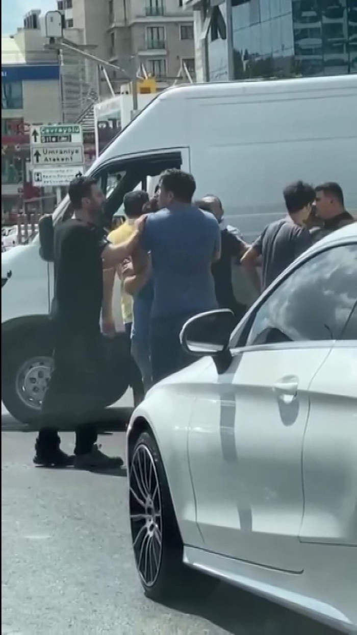 Ümraniye, Küçüksu Caddesi'nde dün öğle saatlerinde otomobil sürücüsü ile kamyonet şoförü arasında trafikte yol verme nedeniyle tartışma çıktı.